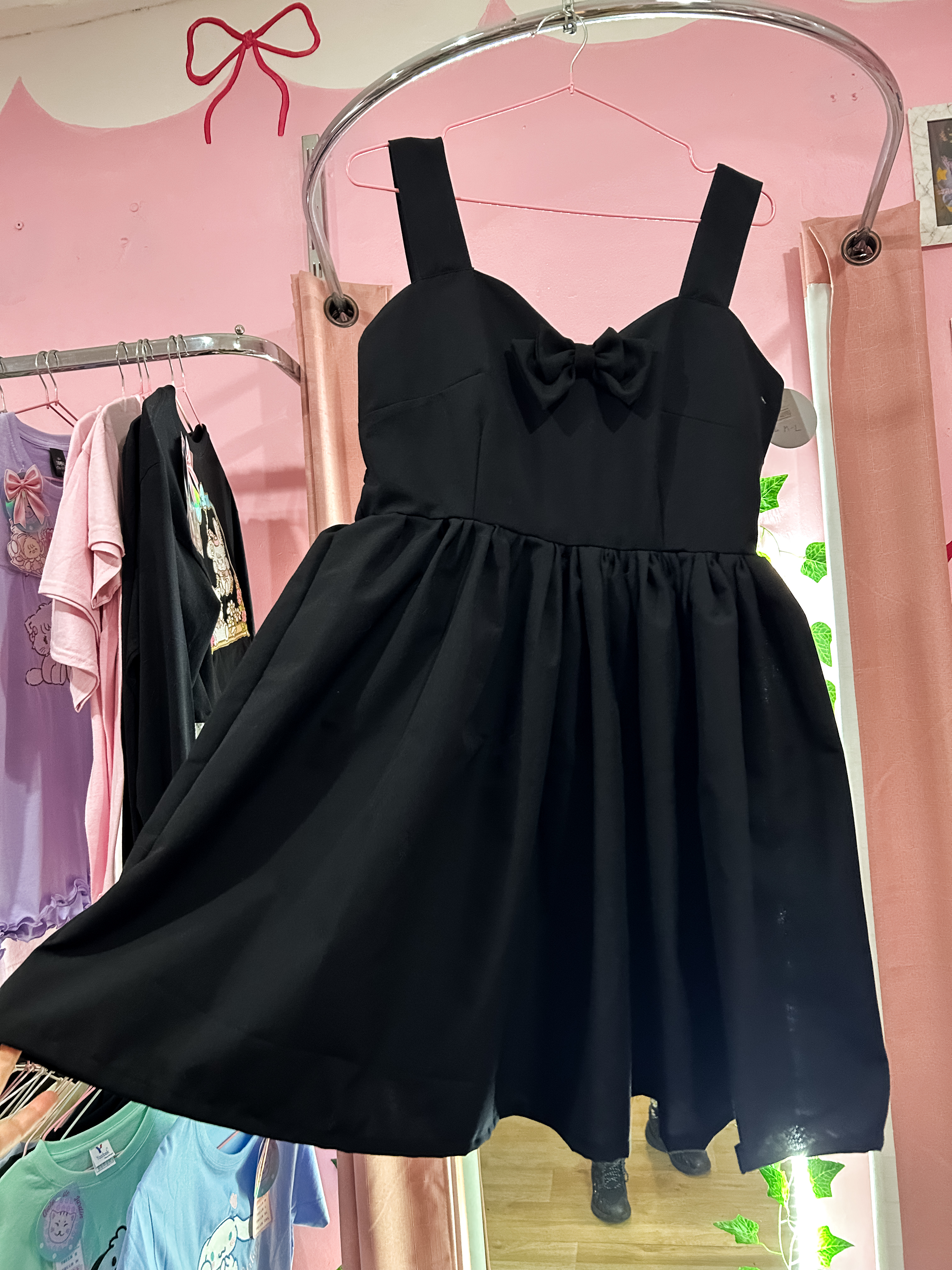 Vestido Basic black, confeccionado en suave viscosa que brinda comodidad y un ajuste excepcional. Este modelo destaca por su diseño de escote en corazón y un atractivo bow en el pecho, que añade un toque encantador. La espalda presenta un shirring completo que permite un estiramiento de aproximadamente 15 cm más de la talla indicada, garantizando un fit cómodo para diferentes figuras.